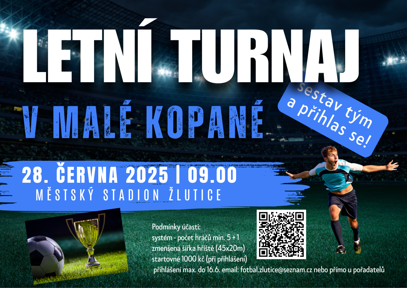 Turnaj se uskuteční 28. 6. 2025.Turnaj bude probíhat od 9 hodin (potvrzení účasti týmu do 8.40, takže sraz minimálně jednoho zástupce týmu již v 8.30).